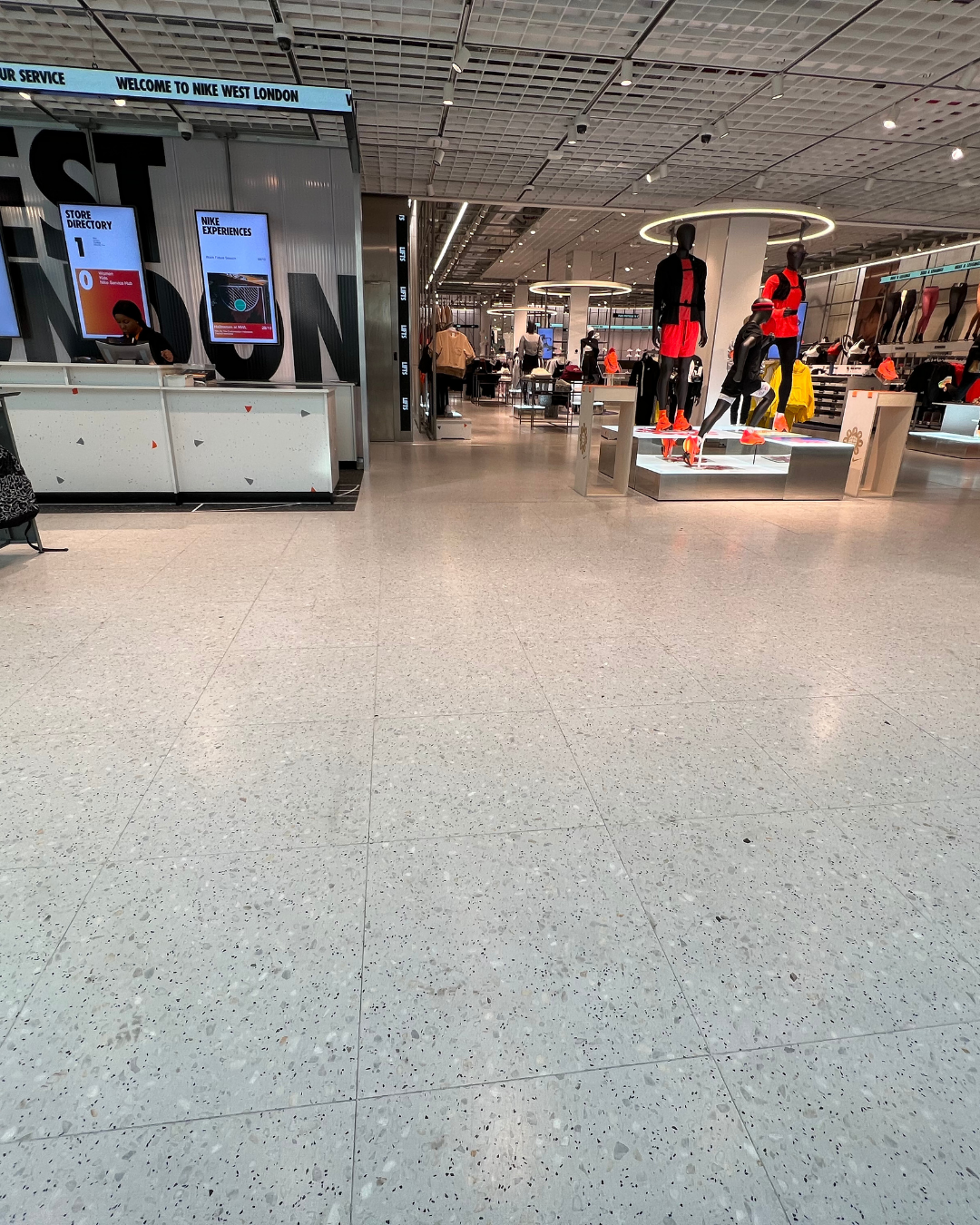For Nike in Leeds, our bespoke terrazzo resin flooring played a key role in creating a clean, cohesive store design built for heavy daily use. The sleek finish supports the brand’s sporty aesthetic while offering exceptional strength and reliability.