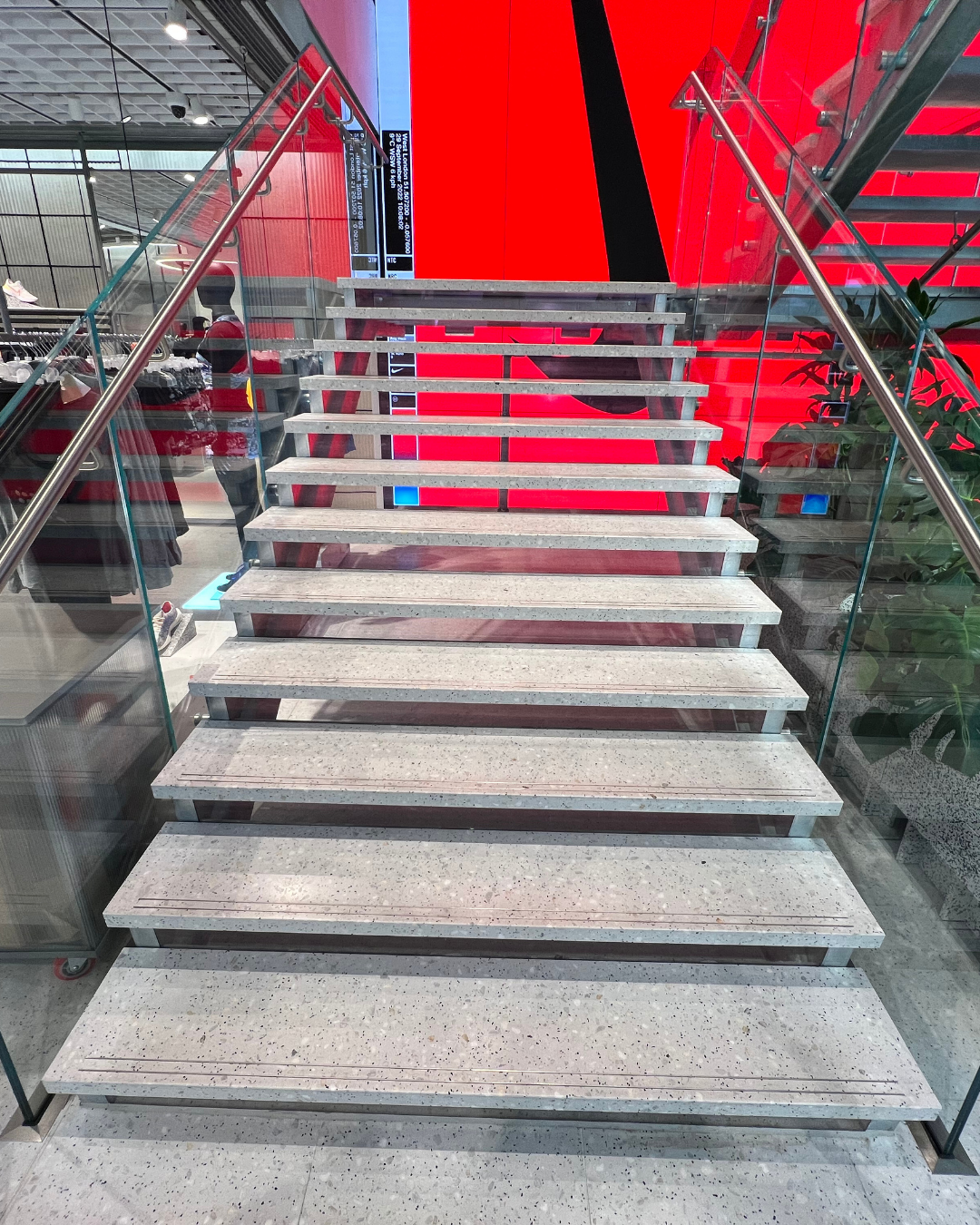 For Nike’s store in Westfield, our bespoke terrazzo resin flooring was central to shaping a sleek and future-facing retail setting. The finished surface delivers a bold yet minimal aesthetic that aligns perfectly with Nike’s contemporary design language.